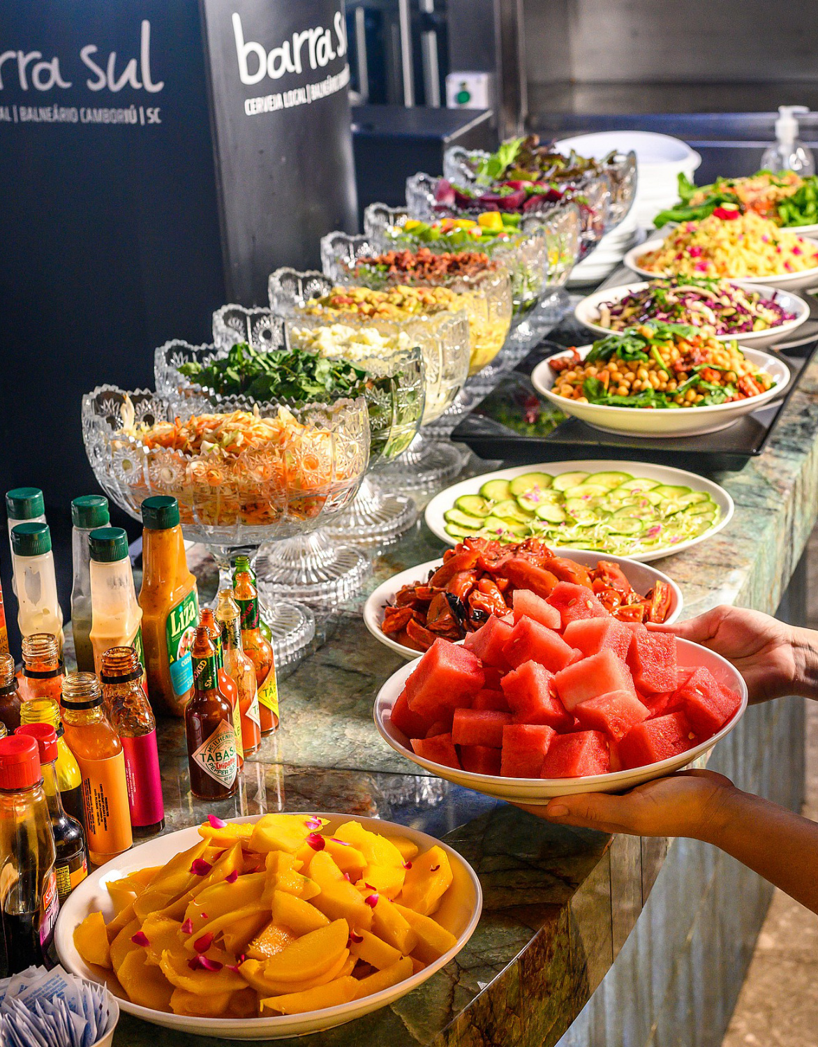 Buffet por quilo sofisticado.
